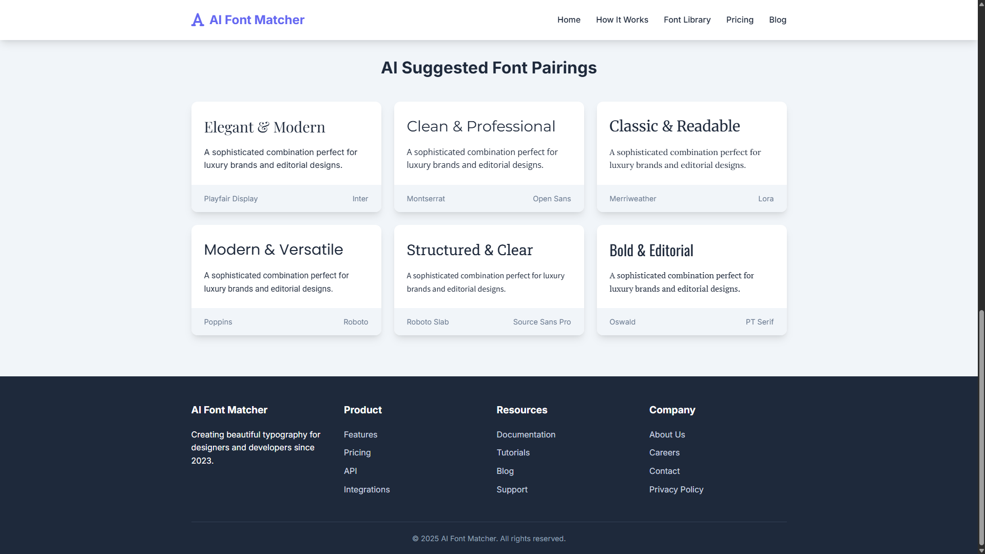 In conclusion, AI Font Matcher revolutionizes the typography design process by combining the vast library of Google Fonts with intelligent pairing algorithms, creating an essential tool for designers and developers alike. By offering real-time previews, customizable options, and export-ready CSS code, it streamlines workflow while ensuring professional, aesthetically pleasing results. This application not only saves valuable time but also empowers users to create visually compelling projects with confidence, making sophisticated typography accessible to everyone regardless of their design experience.