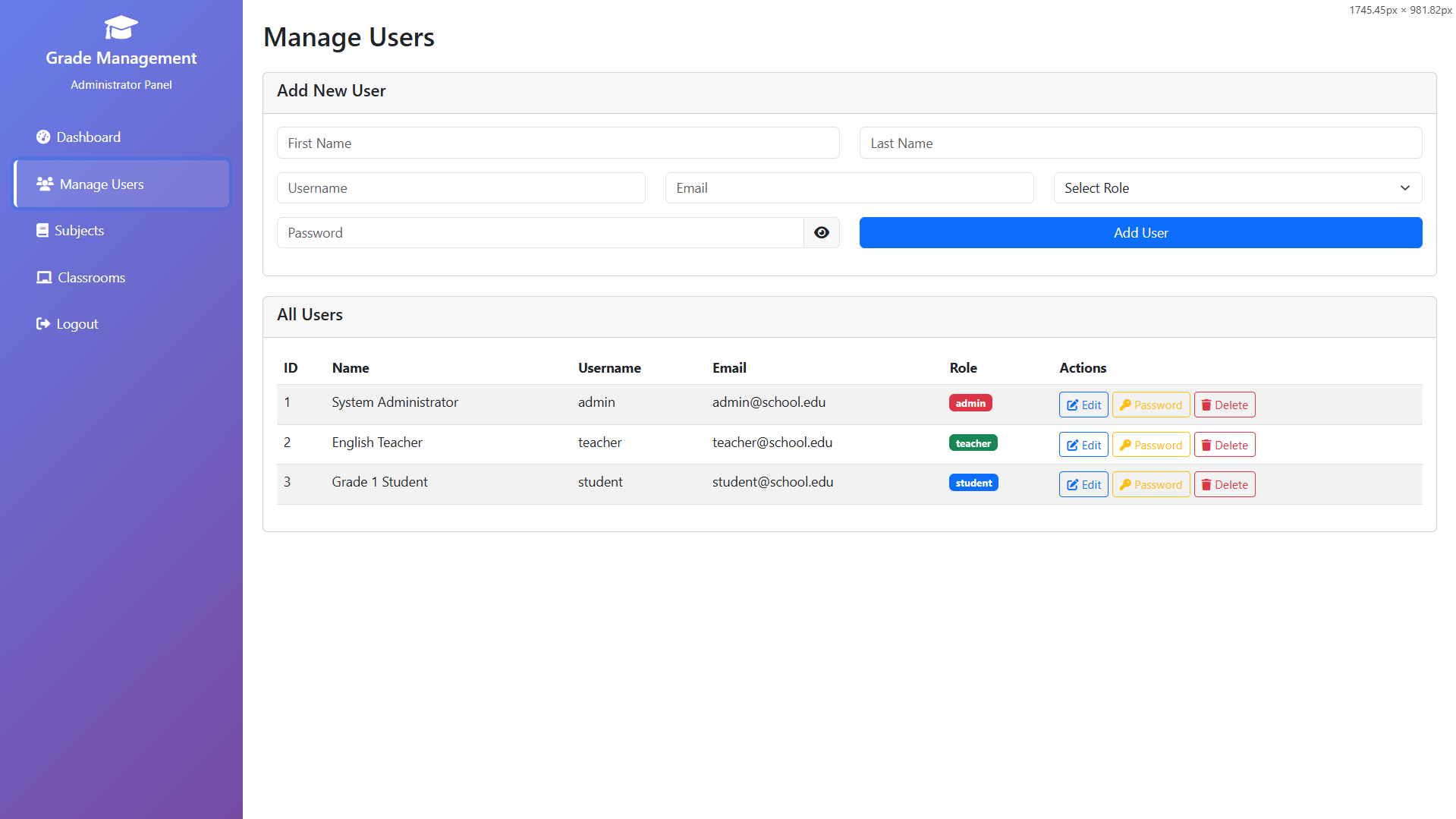 The system features role-based access control that ensures each user type—administrators, teachers, and students—has appropriate permissions and tools tailored to their specific needs. Administrators enjoy complete oversight with user management capabilities, teachers benefit from intuitive grade entry and classroom tools, while students access a personalized portal to view their academic performance. With its responsive design, real-time analytics, and secure authentication framework, the Student Grades Management System represents the perfect blend of functionality and reliability for modern educational institutions seeking to enhance their academic operations.