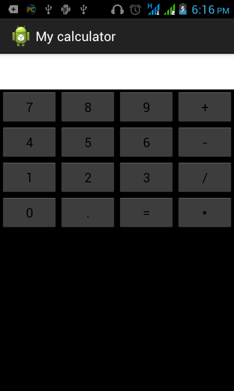 TableLayout for the calculator's screen. In the top will be placed a text field and below - all the buttons with digits and operations button.
