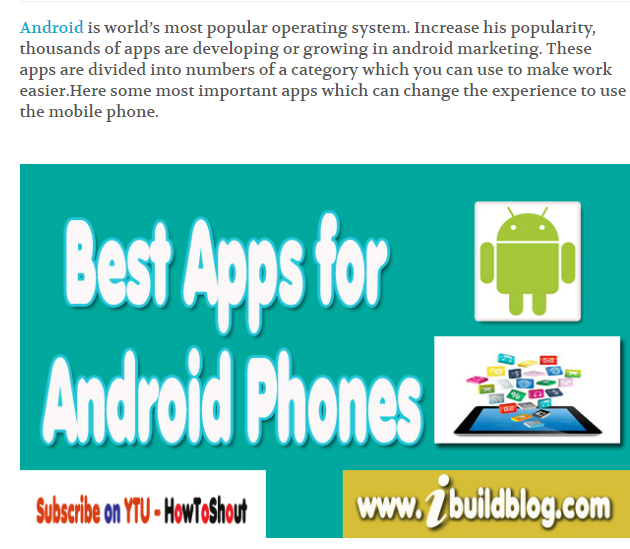 Android is world’s most popular operating system. Increase his popularity, thousands of apps are developing or growing in android marketing. These apps are divided into numbers of a category which you can use to make work easier.Here some most important apps which can change the experience to use the mobile phone.