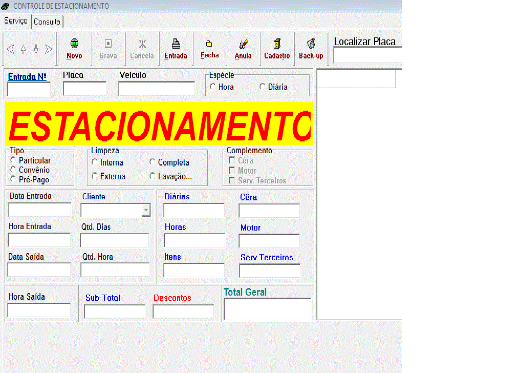 Simple but functional with Paradox database. great system for administering a small parking. Control for hours or days and search by vehicle plate. Can charge the cervico lavagen Vehicle. Complete system and parking tiket printout of payment.Note: Due to the size or complexity of this submission, the author has submitted it as a .zip file to shorten your download time. After downloading it, you will need a program like Winzip to decompress it.