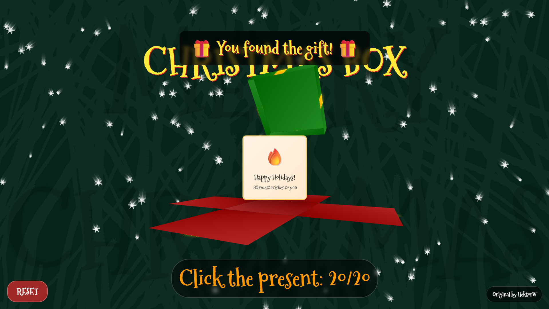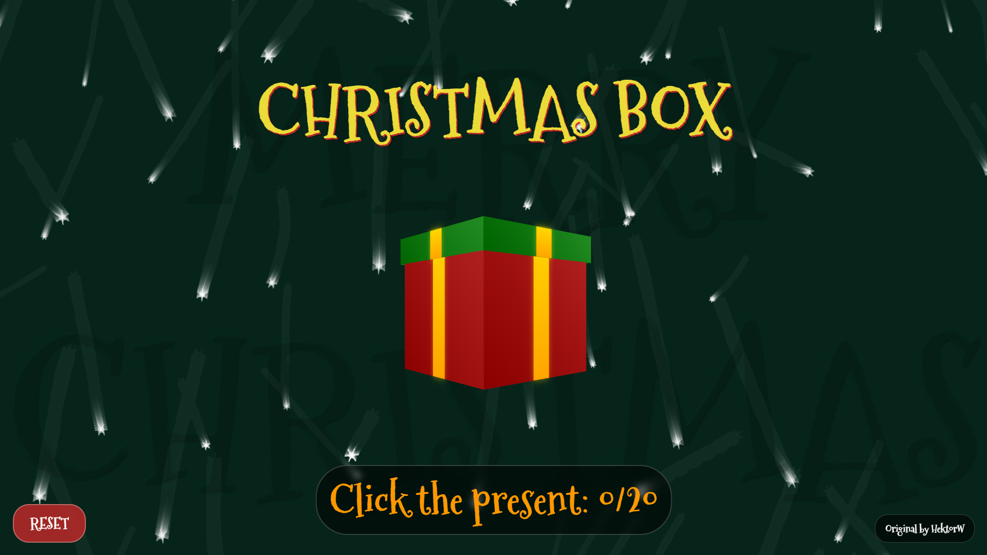Welcome to the Christmas Present Animation, an interactive web experience that brings holiday cheer to life through the magic of web technologies. This delightful application transforms your screen into a winter wonderland where you can interact with a beautifully crafted 3D Christmas present, simulating the excitement of opening a holiday piñata. With each click, watch as the present wiggles and shakes until it finally bursts open to reveal a special festive message, accompanied by a shower of confetti and falling snowflakes that create an immersive seasonal atmosphere.