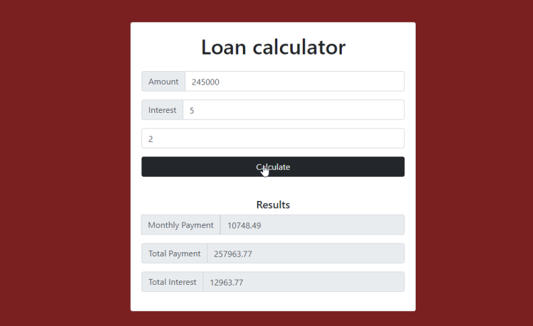 That's all, The Simple Loan Calculator App using jQuery was created fully functional using JavaScript language. I hope that this project can help you to what you are looking for. For more projects and tutorials please kindly visit this site. Enjoy Coding!