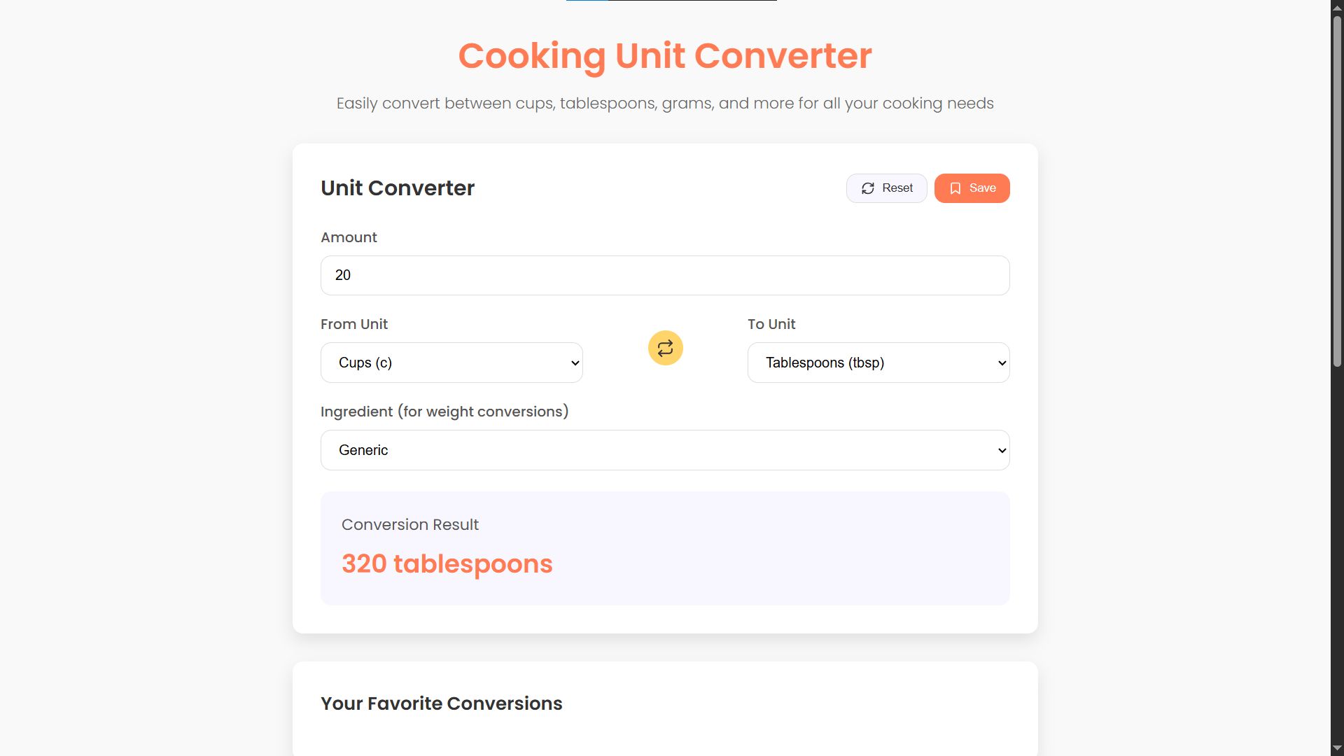 In conclusion, the Cooking Unit Converter is the perfect kitchen companion, eliminating measurement guesswork with its intuitive interface, precise conversions, and handy features like saved favorites and ingredient-specific calculations. Whether you're baking, meal prepping, or trying a new recipe, this tool ensures accuracy and efficiency, letting you focus on what really matters—creating delicious dishes with confidence!