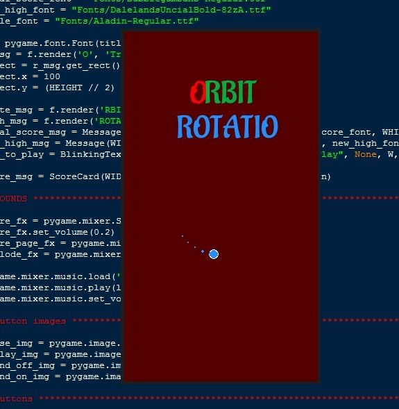 The Orbit Rotation Game Using Pygame in Python with Source Code is free to be downloaded just read the content below for more info. This application is for educational purpose only.