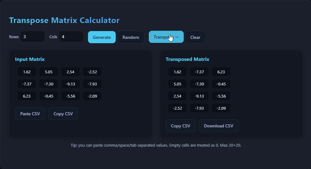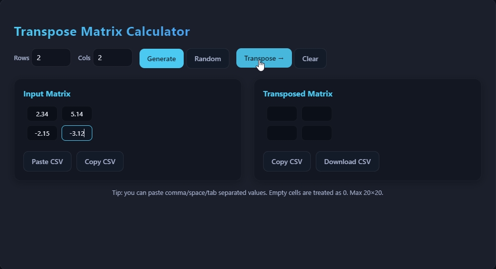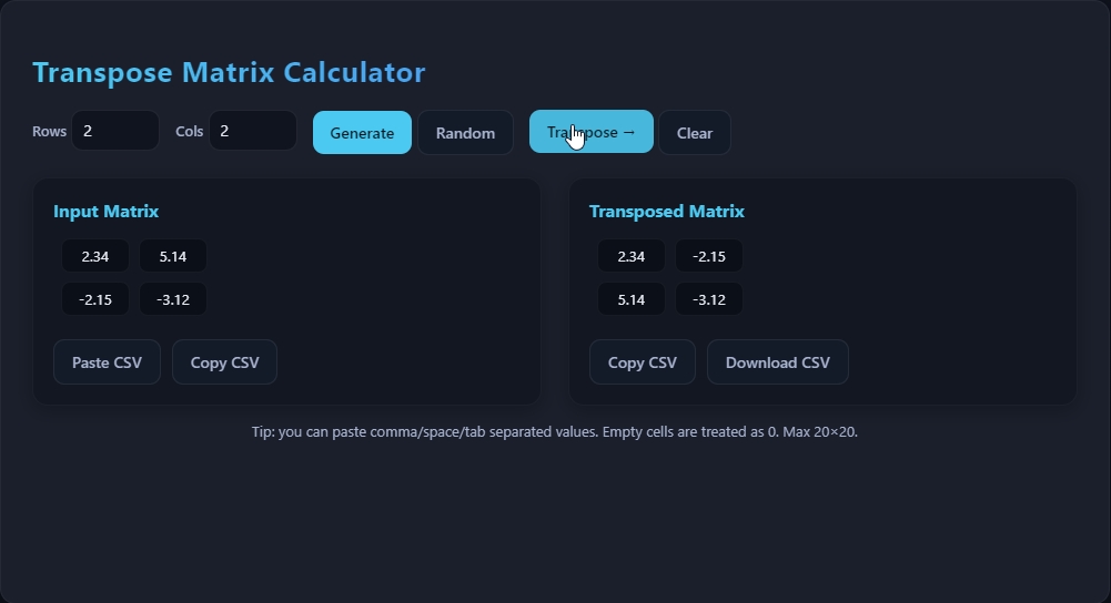 Transpose Matrix Calculator App Using HTML, CSS, and JavaScript with Source Code Features