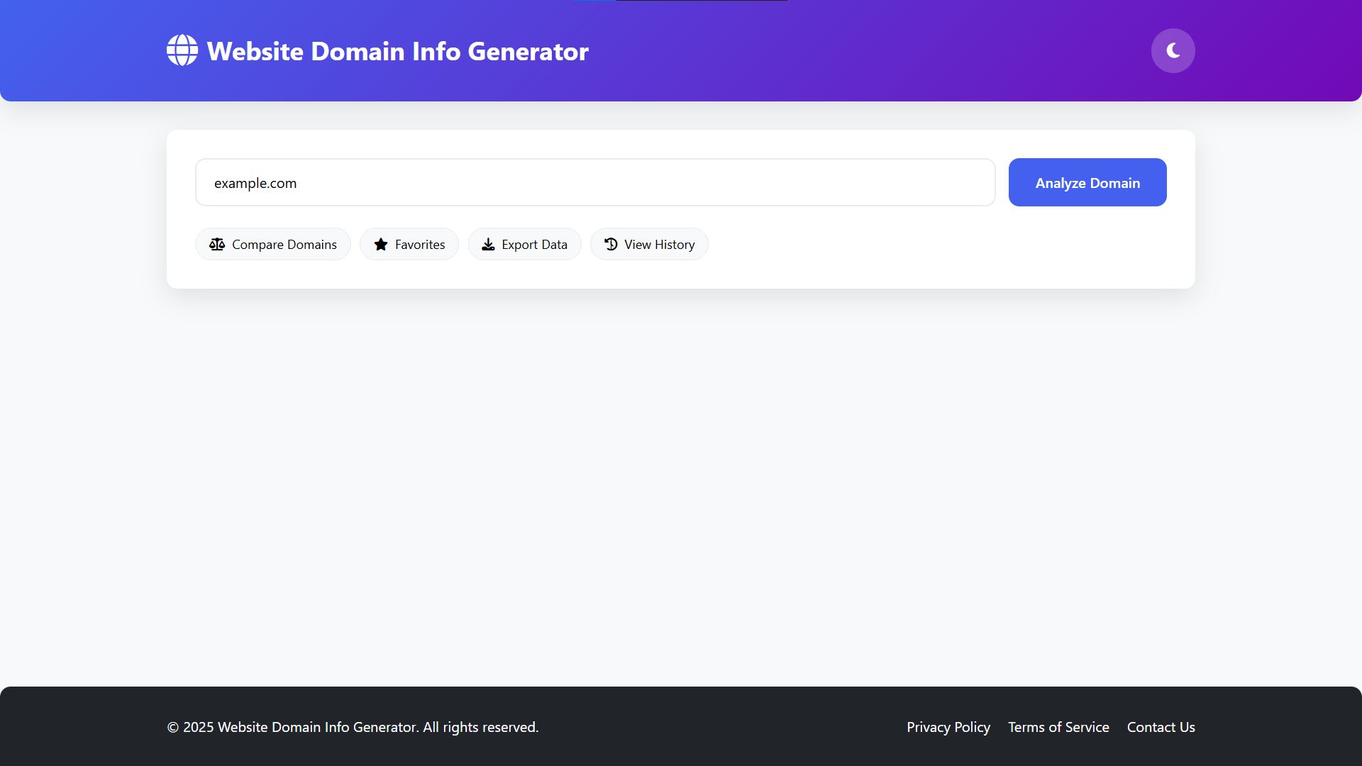 In conclusion, the Website Domain Info Generator stands as a powerful yet user-friendly tool that bridges the gap between technical domain analysis and everyday practical needs. With its modern design, comprehensive analytics, and intuitive interface, it empowers users to make informed decisions about their online presence with confidence and clarity.