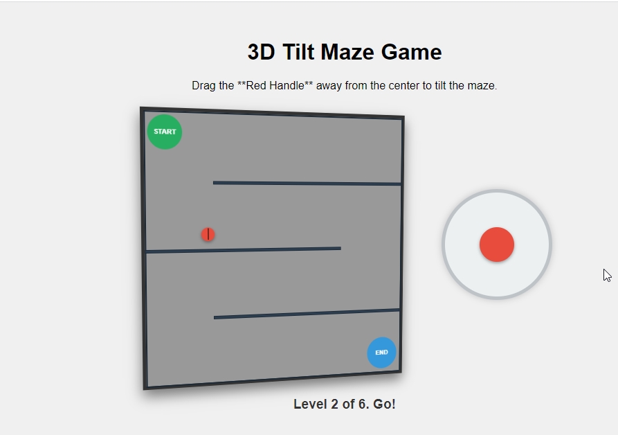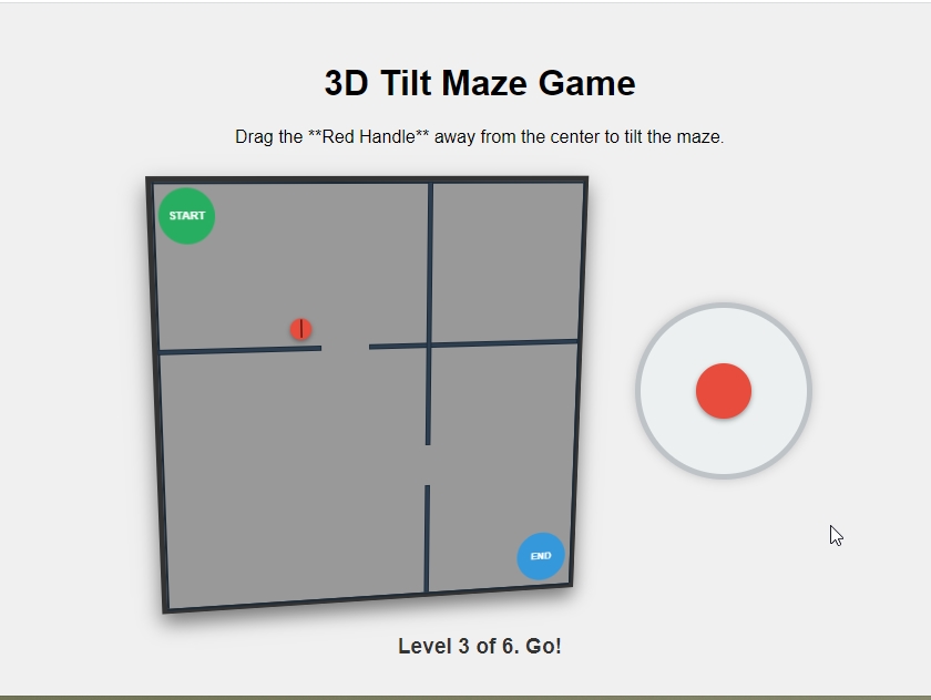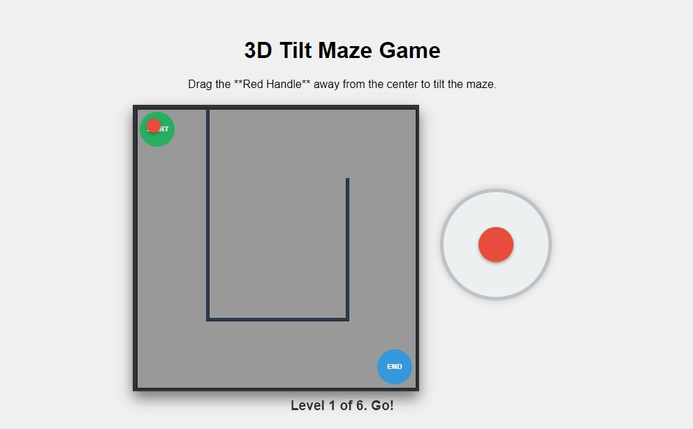Titling Maze Game Using JavaScript is an immersive and challenging puzzle game that tests your precision, strategy, and hand-eye coordination. In this game, players control a ball by tilting the maze itself using a responsive joystick, carefully guiding it through intricate pathways and around tricky obstacles to reach the exit. Each level presents unique challenges, including narrow corridors, moving traps, and dead ends, requiring players to plan their moves and time their tilts perfectly. The intuitive controls make the gameplay smooth and engaging, allowing players to feel fully in control as they navigate increasingly complex mazes. With every level, the difficulty ramps up, offering a perfect balance of fun and challenge that keeps players coming back for more. Ideal for puzzle lovers and casual gamers alike, Titling Maze Game provides hours of entertainment and a satisfying sense of accomplishment with each successfully completed maze.