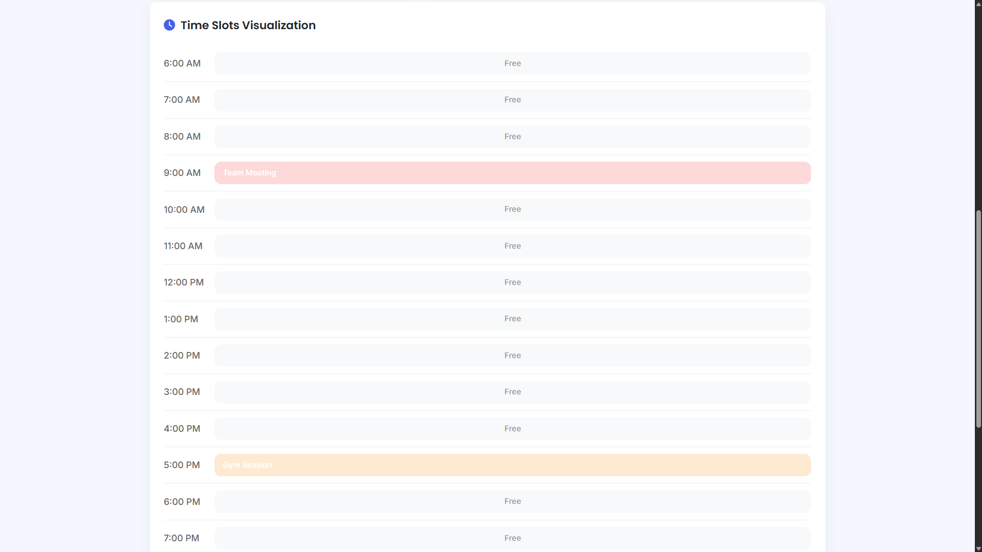 Welcome to the AI Scheduling Assistant, an advanced web-based application created to redefine the way you plan and manage your daily activities. This intuitive tool features a clean, modern interface paired with intelligent scheduling capabilities that help you visualize, organize, and optimize your time efficiently. By utilizing simulated AI-driven insights, the application delivers practical recommendations designed to boost productivity, minimize stress, and help you make better use of every hour. Whether you are organizing a packed workday, juggling personal responsibilities, or aiming to improve time discipline, this assistant acts as a smart digital companion for effective scheduling.