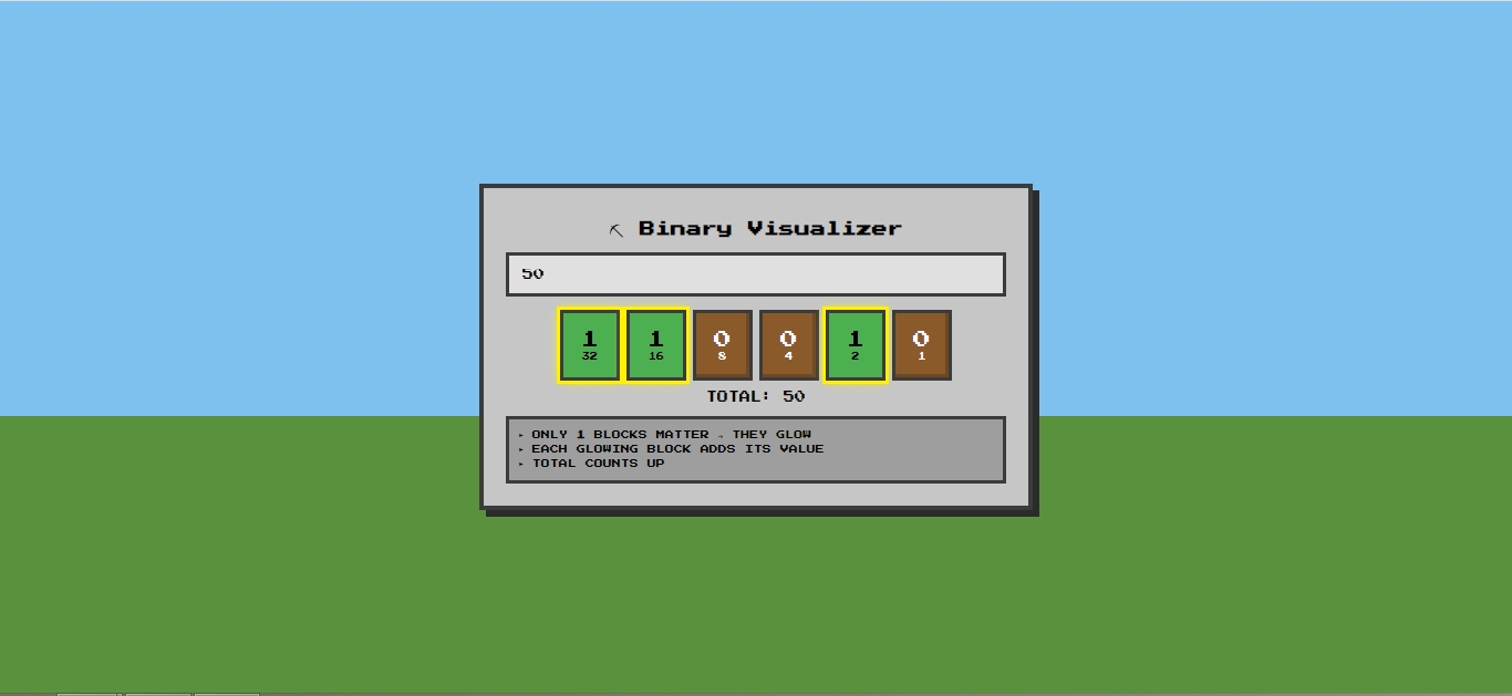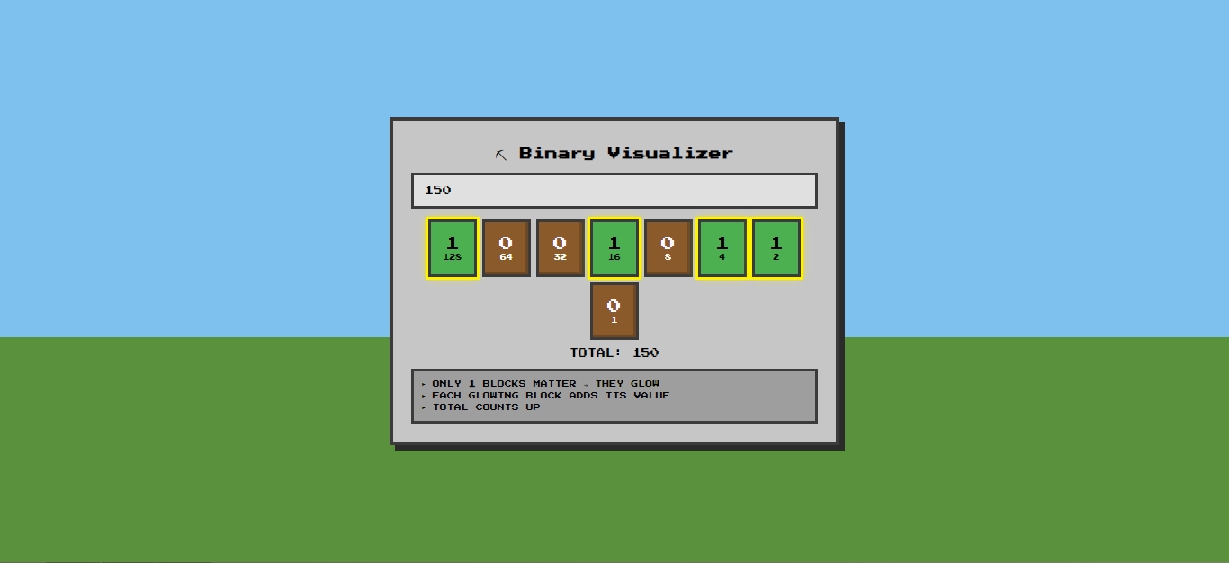 - Glowing or animated effects to indicate changes in binary values.