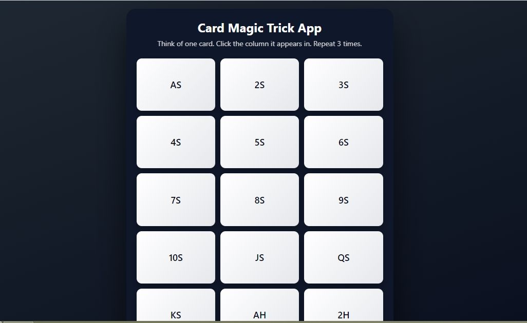 Card Magic Trick App Using HTML, CSS, and JavaScript with Source Code