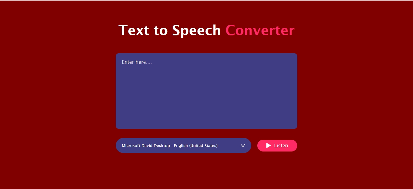 The Text To Speech Converter App using JavaScript is a dynamic web application that allows users to seamlessly convert written text into spoken words. Leveraging the capabilities of JavaScript’s Web Speech API, the app provides an intuitive interface where users can type or paste any text and instantly hear it read aloud. It offers features such as selecting different voice types, adjusting speech rate, and controlling pitch, giving users a highly customizable listening experience. This tool is not only useful for accessibility purposes, helping those with visual impairments or reading difficulties, but also serves as an educational aid for language learners, content creators, and anyone looking to convert text into audio efficiently. By integrating modern web technologies, the app demonstrates how simple, interactive, and responsive design can enhance user engagement while showcasing the practical applications of speech synthesis in everyday digital experiences.