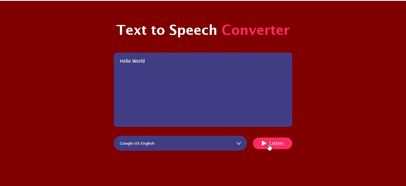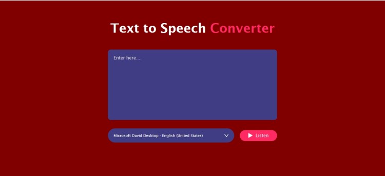 The Text To Speech Converter App is a lightweight web application built entirely with JavaScript. It features a simple design that allows the user to convert text to speech. The Text To Speech Converter App using JavaScript is an excellent project for beginners, as it demonstrates how to make text speak. This project provides a valuable opportunity to practice and strengthen fundamental JavaScript programming skills while building a practical and visually engaging tool.