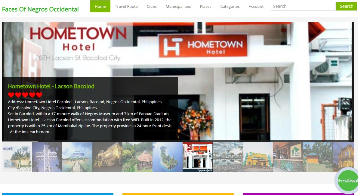 Faces of Negros Occidental Web Application would have the following functionalities: In the blog, all the guest’s post will be seen. In the City, the list of all the cities within the Negros Occidental same thing with municipalities, which has the list of all the municipalities within Negros Occidental. In the categories, places are being categorized according to the tourist spots available such as Heritage Houses, Resorts, Historical Sites, Hotels, Restaurants, and Beach. And in the places, this is where the most visited, recommended cities, highly rated places are being displayed.