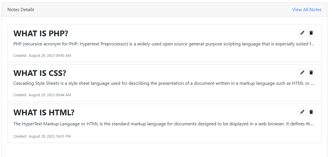 In the fast-paced digital age, efficient note-taking is essential for harnessing ideas. The Take-Note App, developed using PHP, offers a dynamic solution for capturing and managing thoughts seamlessly. Its intuitive interface and powerful functionalities simplify note creation and organization, allowing you to focus on creativity. The app's commitment to data safety, evident in its delete confirmation feature, ensures your ideas are protected. Best of all, we're thrilled to share the app's source code for free, inviting developers to customize and innovate. Embrace the Take-Note App to amplify your note-taking journey and empower your productivity.