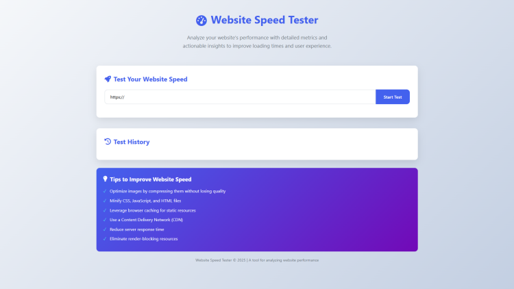 Welcome to Website Speed Tester, your ultimate solution for analyzing and optimizing website performance. In today's fast-paced digital landscape, website speed is no longer a luxury but a critical necessity that directly impacts user experience, search engine rankings, and conversion rates. Our comprehensive testing tool provides developers, digital marketers, and website owners with deep insights into their website's performance characteristics, enabling data-driven decisions for optimization and improvement.