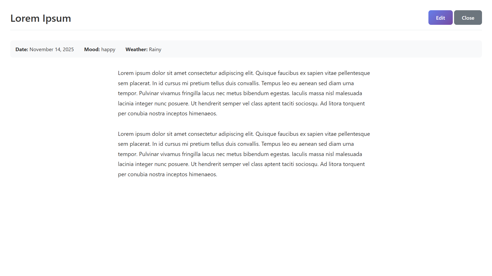 Experience the perfect blend of simplicity and functionality with features designed to enhance your journaling practice. The app enables you to record entries with rich context including mood tracking and weather conditions, while providing powerful tools to manage your content through easy editing, deletion, and full-screen reading capabilities. Your data remains completely private and secure, with individual user accounts ensuring that your personal reflections stay personal. With a responsive design that adapts to any device and a user-friendly interface that requires no technical expertise, maintaining your digital diary has never been more accessible or enjoyable.