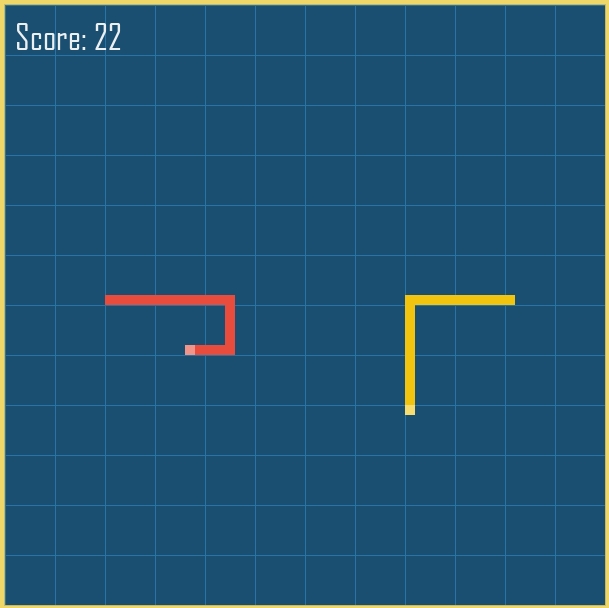 - Clear color distinction between players (e.g., Blue and Yellow light trails).