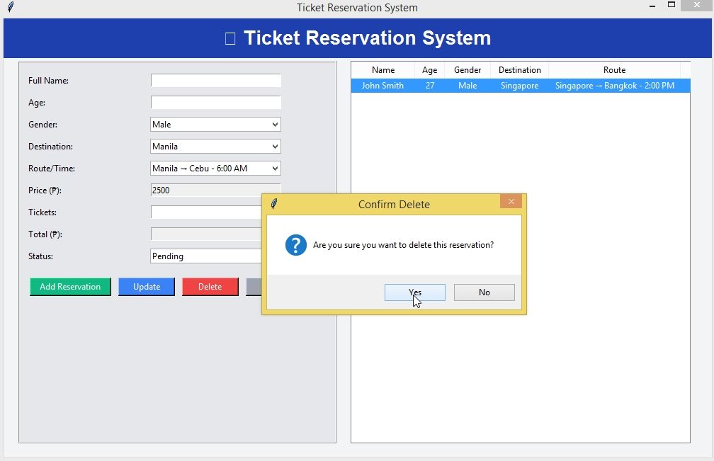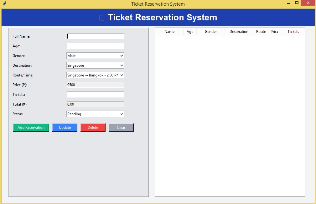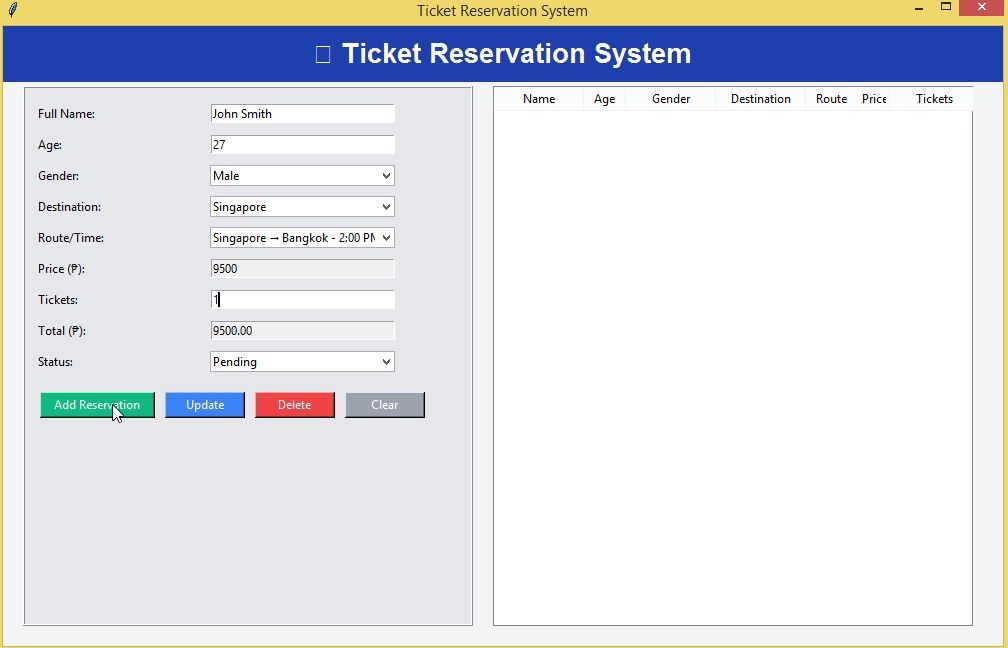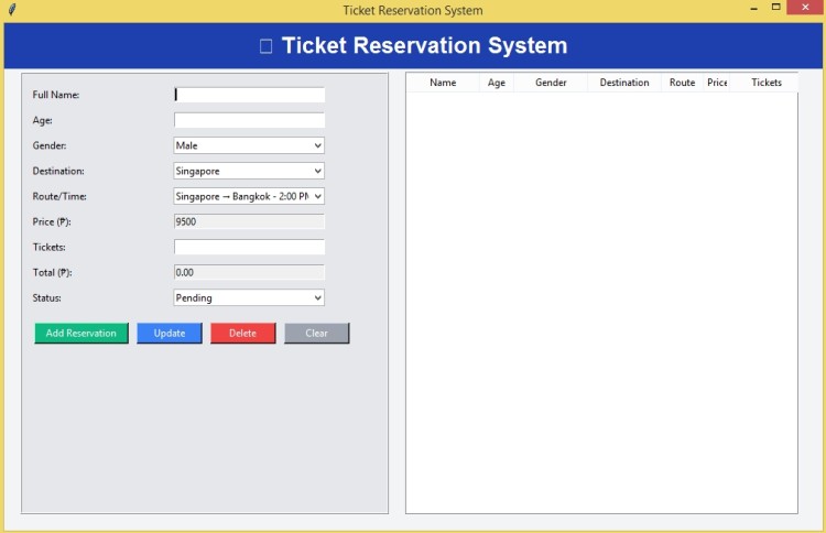 The Ticket Reservation System Using SQLite and Tkinter in Python with Source Code is free to be downloaded just read the content below for more info. This application is for educational purpose only.