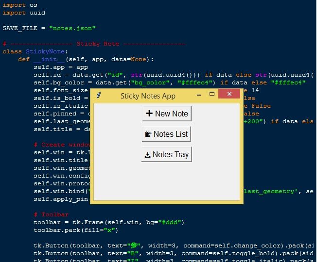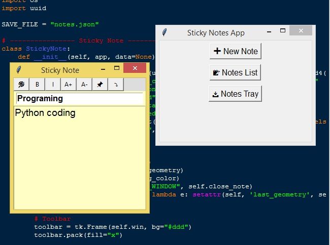 The Sticky Notes App Using Tkinter in Python with Source Code is free to be downloaded just read the content below for more info. This application is for educational purpose only.