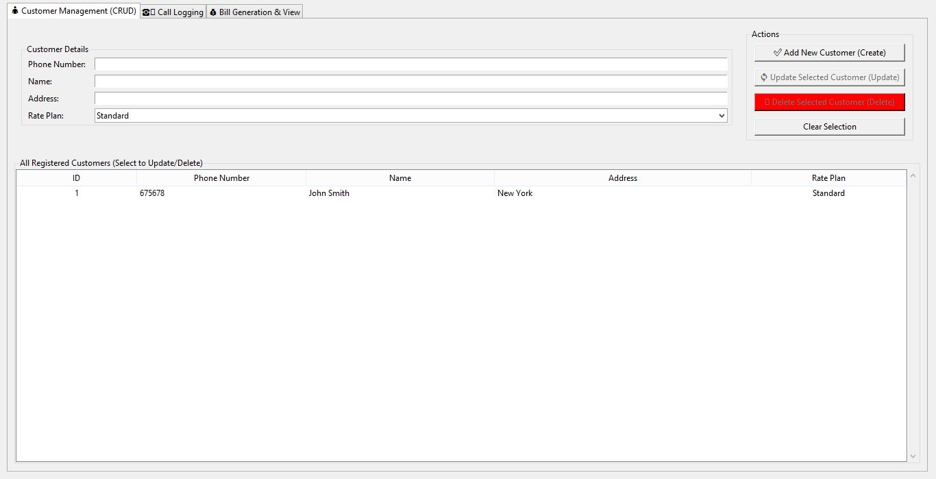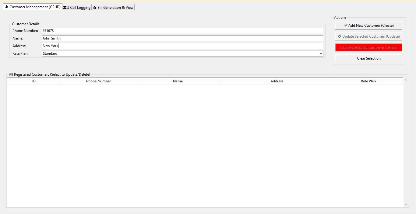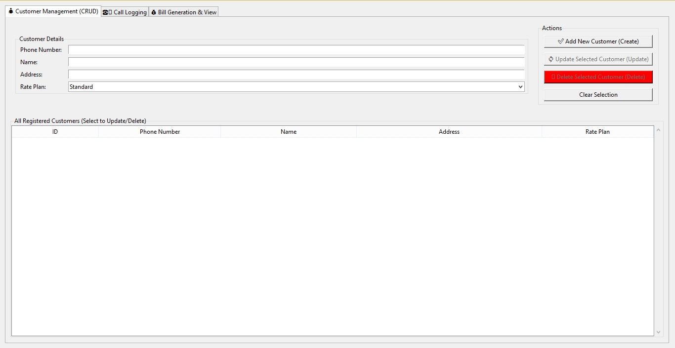 The system automatically calculates telephone bills based on call duration, usage rates, or predefined billing plans, reducing manual errors and saving time. Users can search and view detailed billing records, generate monthly invoices, and review payment histories through a well-organized interface. Overall, this project highlights essential concepts such as GUI design, database connectivity, CRUD operations, and basic business logic implementation, making it an excellent learning project for students and beginners aiming to build practical Python applications.