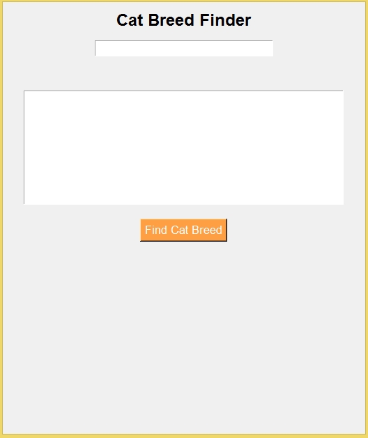 Cat Breed Finder AppNote: Due to the size or complexity of this submission, the author has submitted it as a .zip file to shorten your download time. After downloading it, you will need a program like Winzip to decompress it.