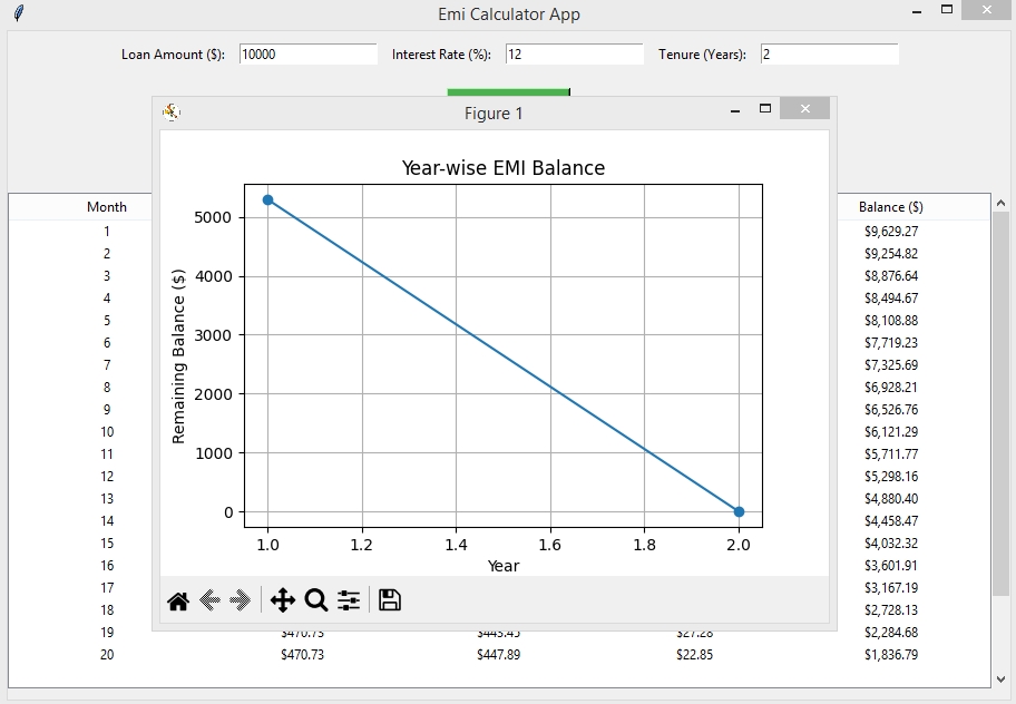 That's all, The Emi Calculator App was created fully functional using Python language. I hope that this project can help you to what you are looking for. For more projects and tutorials please kindly visit this site. Enjoy Coding!