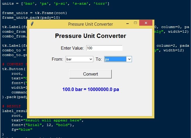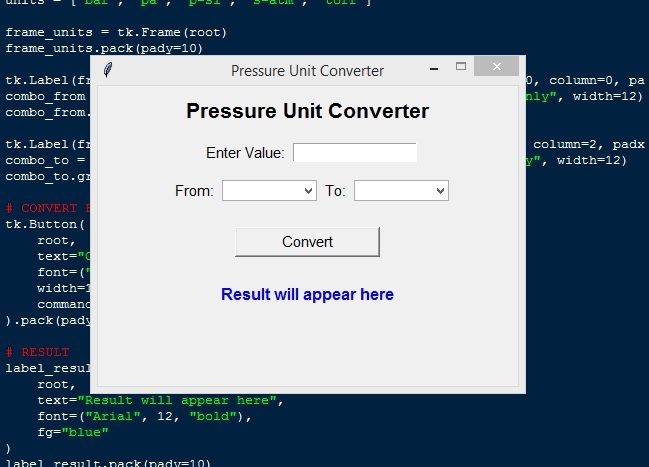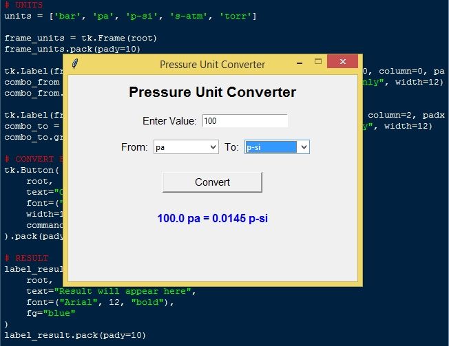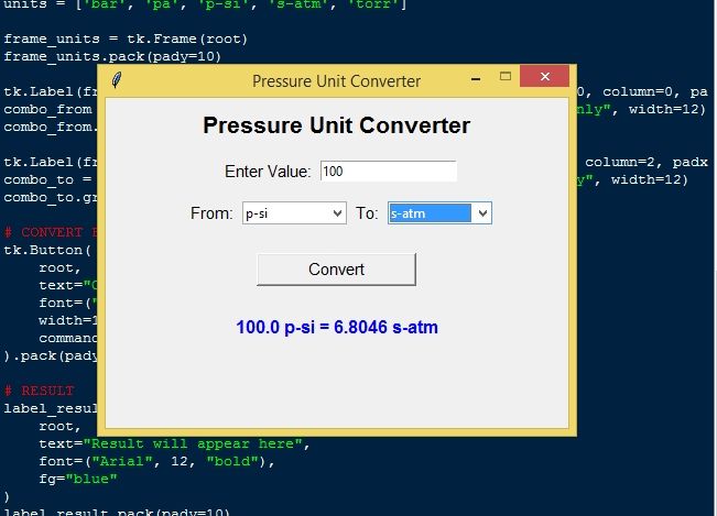 Pressure Unit Convert App Using Tkinter in Python with Source Code Installation Guide