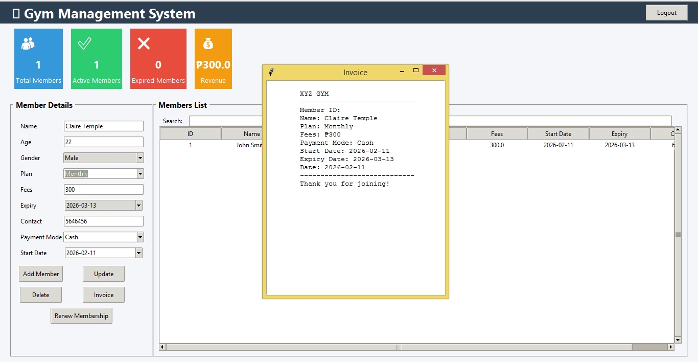 - Stores all member and transaction data in a SQLite database.