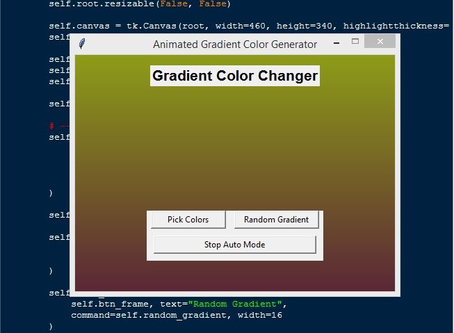 Animated Gradient Color Changer App Using Tkinter in Python with Source Code Basic Information