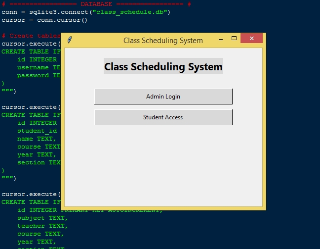 Class Scheduling System Using Tkinter and SQLite in Python with Source Code Installation Guide