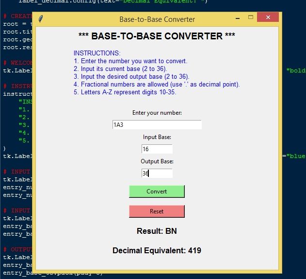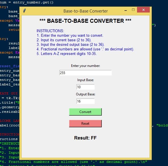 Base to Base Converter App Using Tkinter in Python with Source Code Basic Information