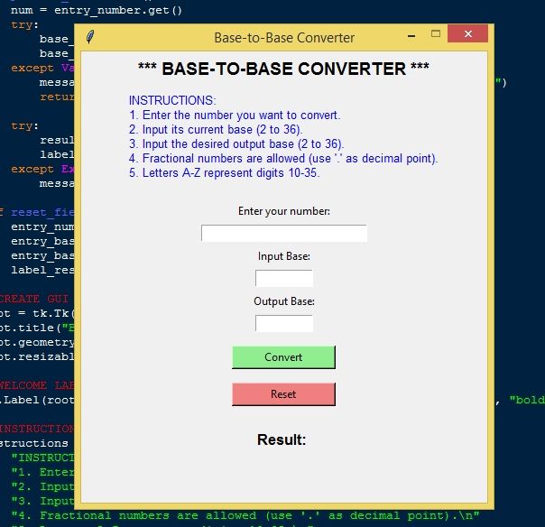 The Base to Base Converter App Using Tkinter in Python with Source Code is free to be downloaded just read the content below for more info. This application is for educational purpose only.