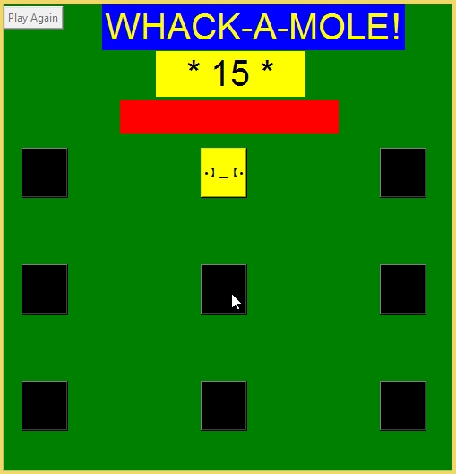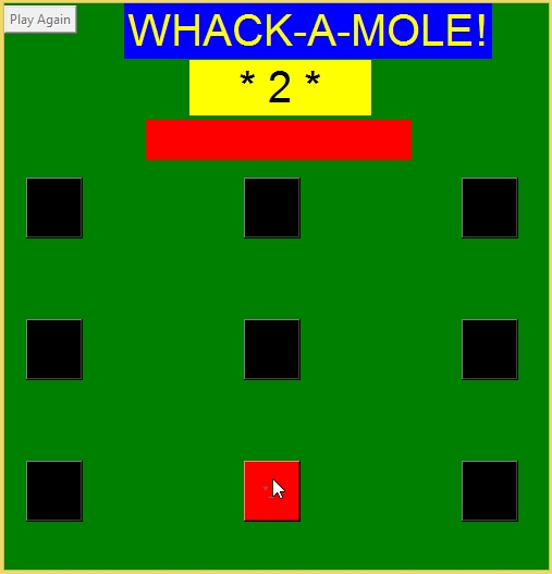 Whack a Mole GameNote: Due to the size or complexity of this submission, the author has submitted it as a .zip file to shorten your download time. After downloading it, you will need a program like Winzip to decompress it.