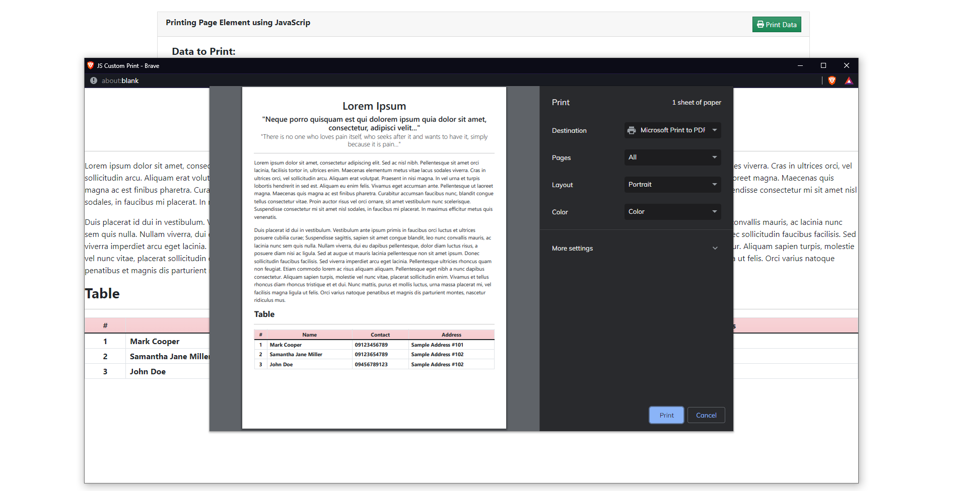 That's the end of this tutorial! I hope this JavaScript Tutorial for Printing the HTML Element will help you with what you are looking for and you'll find this tutorial useful for your future web application projects. Explore more on this website for more Tutorials and Free Source Codes..