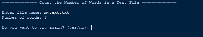 - print("\n============== Count the Number of Words in a Text File ==============\n")