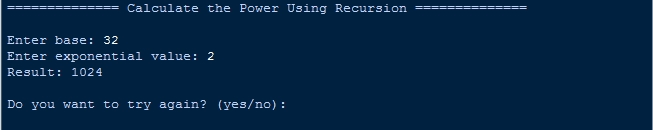 This topic is straightforward and easy to understand. Simply follow the instructions provided, and you’ll complete it with ease. The program will guide you step by step through the process of calculating the power of a number using recursion. So, let’s dive into the coding process!