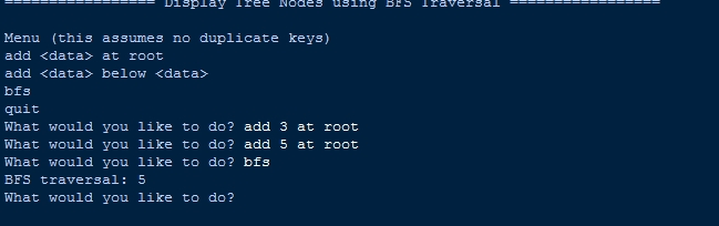 - print("\n================= Display Tree Nodes using BFS Traversal =================\n")