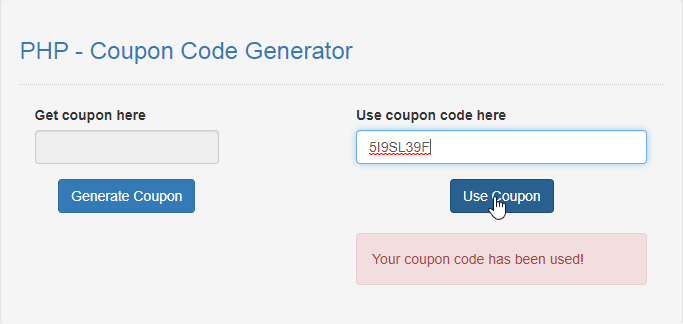 - <h3 class="text-primary">PHP - Coupon Code Generator</h3>